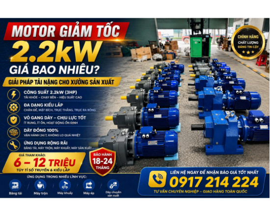 Motor Giảm Tốc 2.2kW Giá Bao Nhiêu? Giải Pháp Tải Nặng Cho Xưởng Sản Xuất