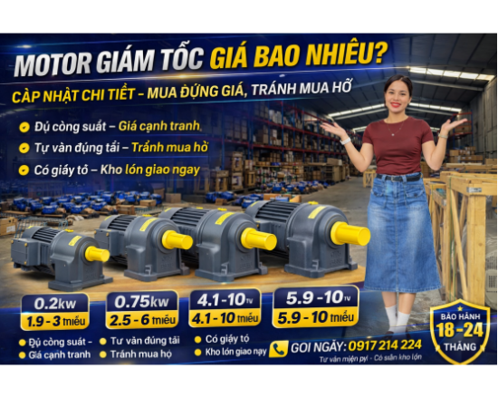 Motor giảm tốc giá bao nhiêu phụ thuộc công suất và loại. Hàng chính hãng, giá tốt, sẵn kho, phù hợp băng tải, máy trộn, máy khuấy và dây chuyền công nghiệp.